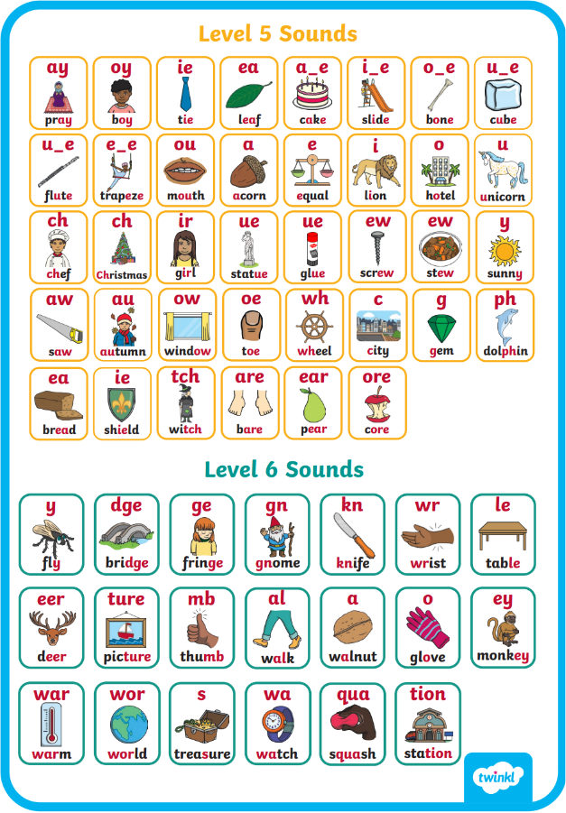 Every day, children in Barn Owls take part in phonics lessons following the school's chosen DFE Phonics scheme which is the Twinkl phonics scheme. Year 1 typically learn the Level 5 sounds and most Year 2s will move on to the Level 6 sounds if they passed the Phonics Screening Check in the summer term of Year 1.